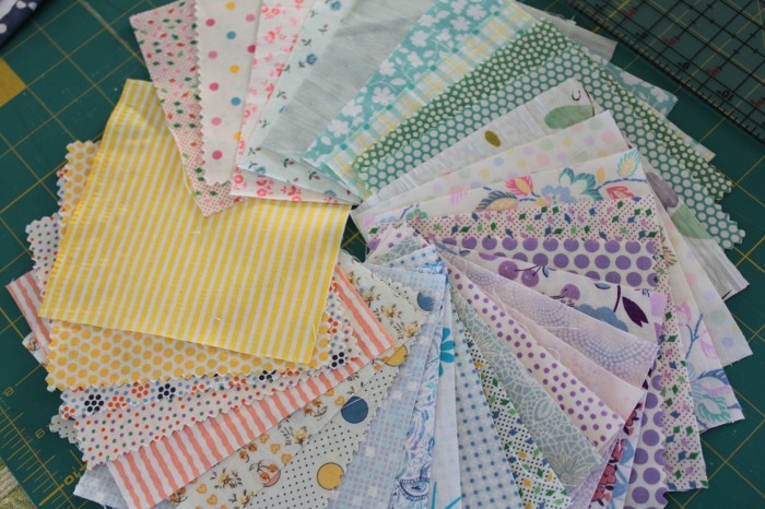 Some of the fabrics are from a charm pack I bought some time ago, others are from my stash – cut to 5in squares.
