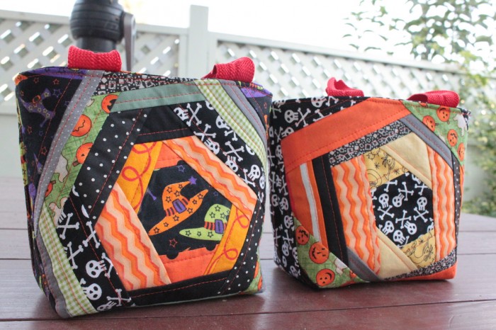 I don’t really go crazy about Halloween. I do it for the kids. I don’t dress up. I don’t do Halloween sewing. And I don’t keep it a secret (actually I am not crazy about holidays in general but that’s a whole different post). This year however… no I did not dress up… I did some sewing – my guys needed new trick-or-treat bags. I was inspired by Pink Chalk Studio Spider Web Log Cabin Tutorial and used the Quilt As You Go method to create these little trick-or-treat bags. 4 in total – 2 for our friends as a present and 2 for my little guys.