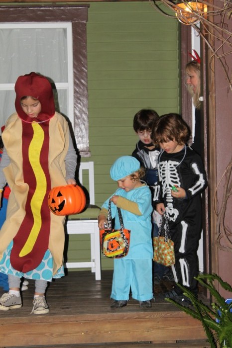 I didn’t have a lot of Halloween fabrics, so I used other stash black/gray/green/orange fabrics, but I am quite happy how they turned out. By guys liked them, and that’s what counts. They were parading around the hose all day with them. They are quite small (made on purpose) so they were quite happy when they filled them up with candy – Sven kept saying “Mommy, I have too much. Too much candy.” Good problem to have, no?