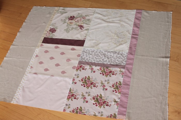 What have I been up to since I finished the Windmolen quilt? Couple of things… Firts, I made another quilt top using linen, repurposed sheets (not vintage), and some stash fabrics. This is the first time I tried the big blocks, kind-of random sized. I cal it the BB quilt, or my shabby chic quilt. It is about 36×46 in and it is awaiting sandwiching… The picture does not do it justice, it looks much better on my ironing board, where it sits right now.