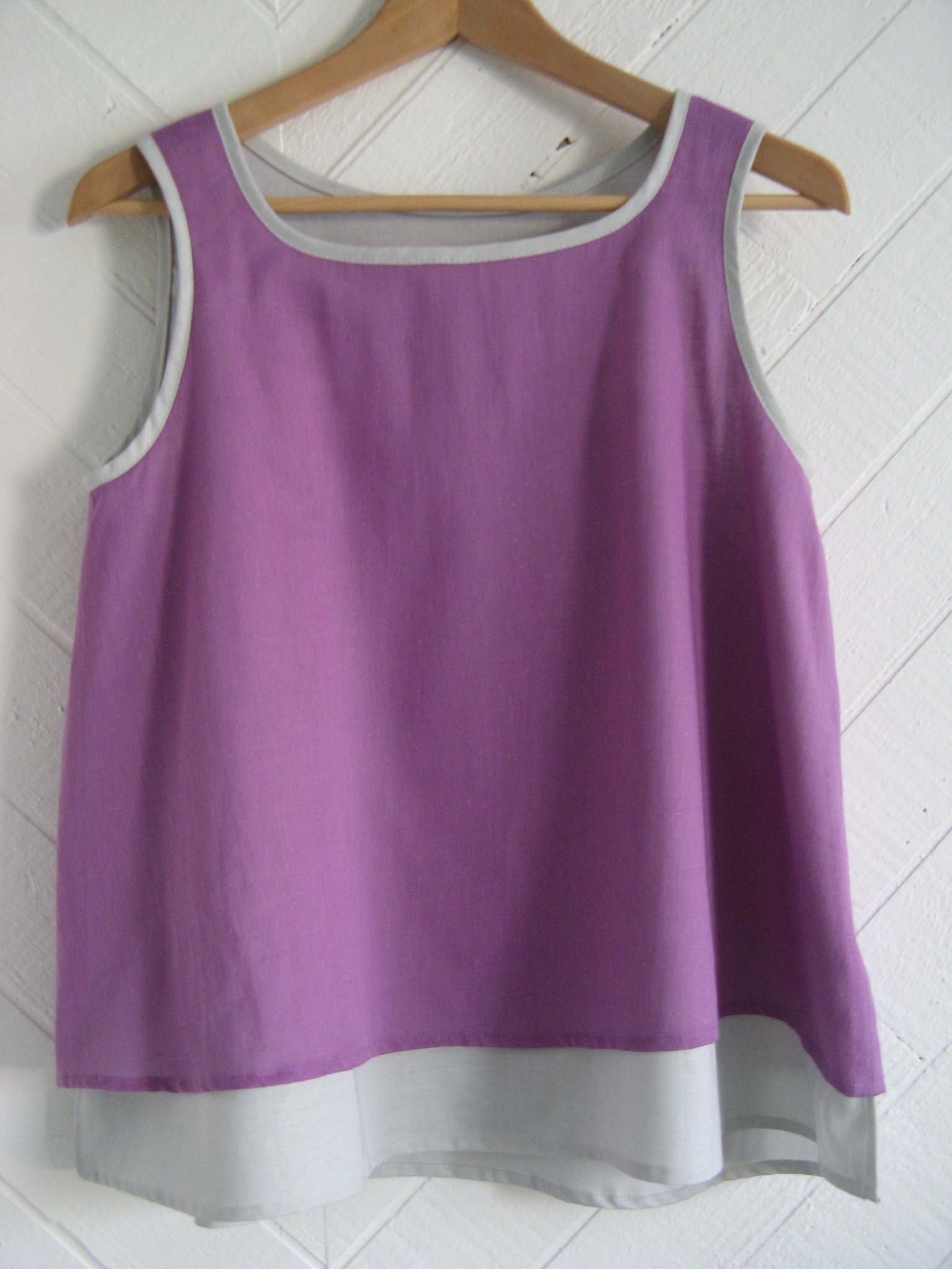 The second one is from Week 4 – another simple sleeveless top, this time with a bit more shaping, but still wide enough to pull overhead. The free pattern is here.