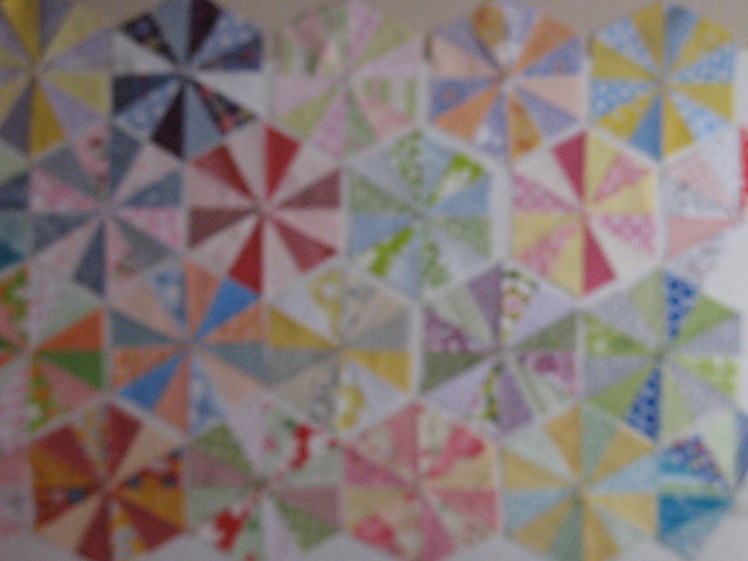 Tolva quilt:: final layout Posted on February 6, 2012 by flekka Just briefly… I finished the last four hexagons today. And then I worked, and worked, and worked… on the layout. After a few iterations, here is the final layout: I probably should have taken one in focus. Oh, well… Share this:Share Click to share on Facebook (Opens in new window) Facebook Click to share on Pinterest (Opens in new window) Pinterest Click to share on X (Opens in new window) X Click to share on Pocket (Opens in new window) Pocket Like Loading...