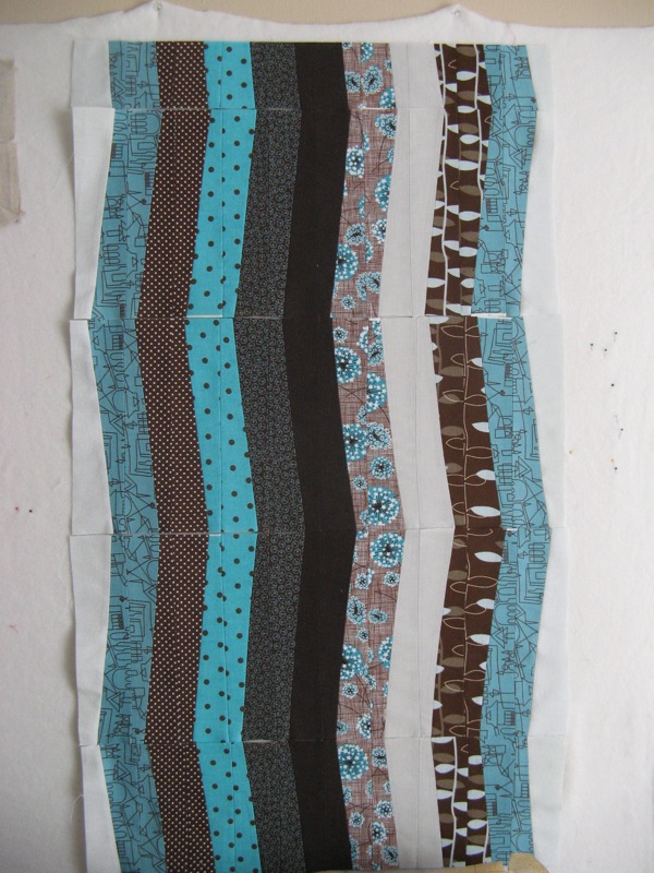And this is what they look like sewn in rows. You might notice that I actually cut the last row into two unequal parts to make the chevrons a bit off center.