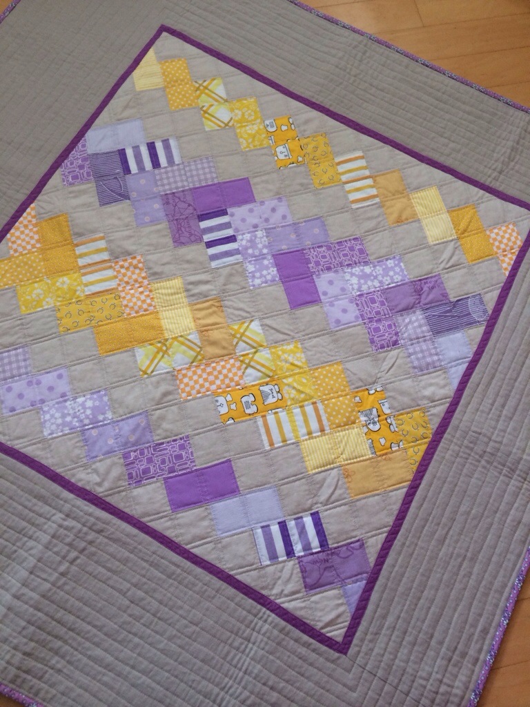 I am not sure what I will do with this quilt. Because of all the linen (the purple linen used on the border is quite thin, which is why I quilted over it quite densely as you can see) I don’t think this quilt will be able to withstand frequent washes. But it’s not really a wall hanging. So?