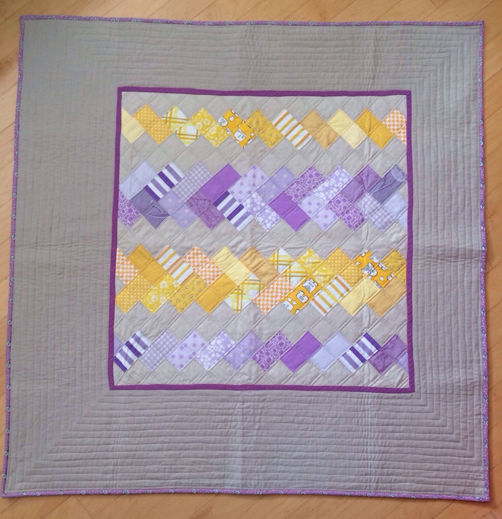 This is the second of the four quilts I finished recently. As always, I cannot come up with a clever name for it, so Herringbone Variation it is. It was inspired by this quilt I found on Pinterest: