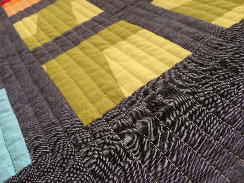 I used gray thread for all quilting over the chambray.