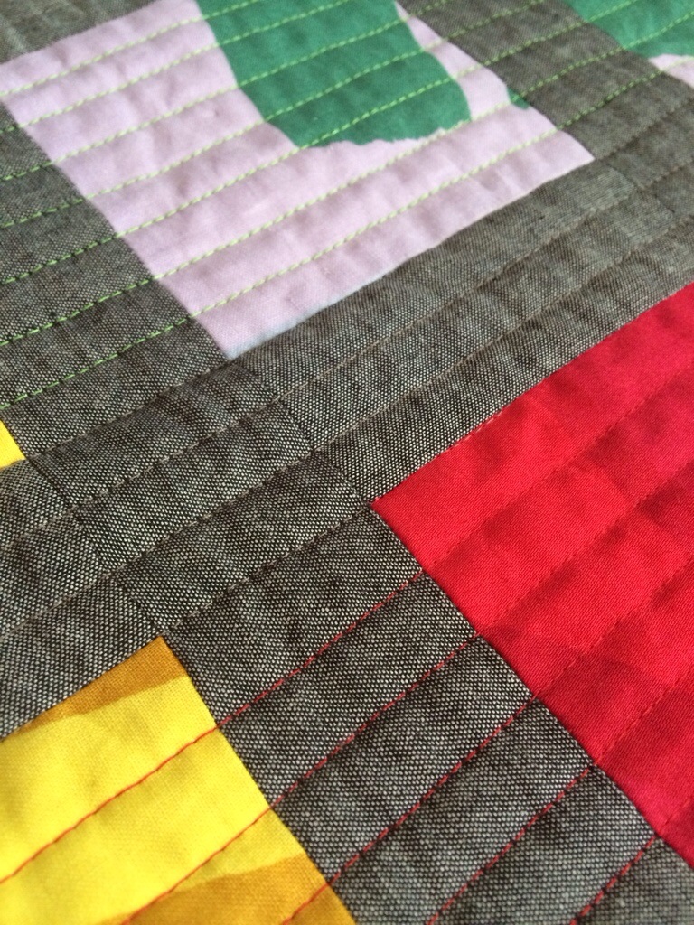 I quilted with different color threads, simple straight lines.