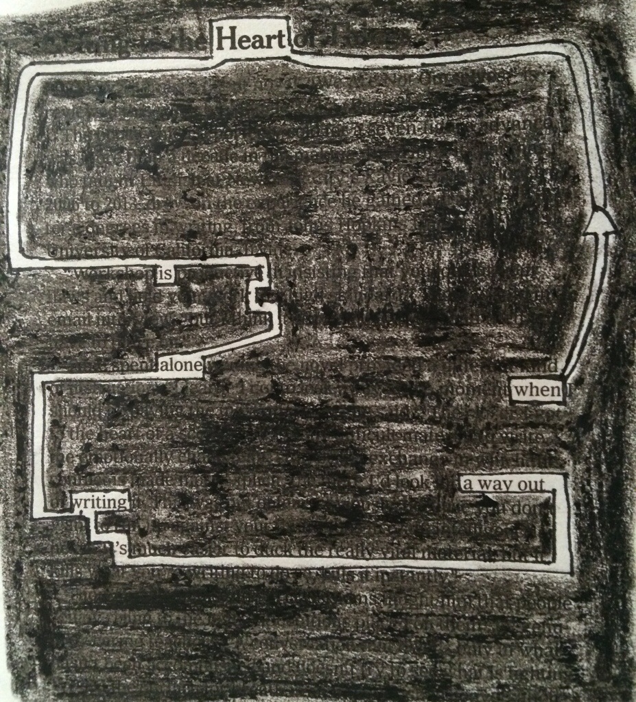 blackout words #3 Posted on September 7, 2014September 19, 2014 by flekka When heart is alone Writing’s a way out. What’s this? Share this:Share Share on Facebook (Opens in new window) Facebook Share on Pinterest (Opens in new window) Pinterest Share on X (Opens in new window) X Share on Pocket (Opens in new window) Pocket Like Loading...